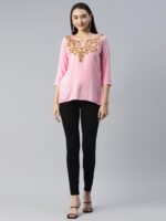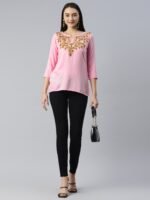 Pink Kashmiri Silk Work Short Kurti