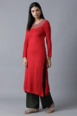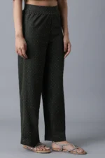 Elegantly crafted with intricate Schiffli embroidery, this lightweight palazzo offers a perfect blend of comfort and style. The silhouette is designed for effortless movement, along with two side pockets, making it a versatile addition to both casual and formal wardrobes. Ideal for adding a touch of traditional charm with modern flair.