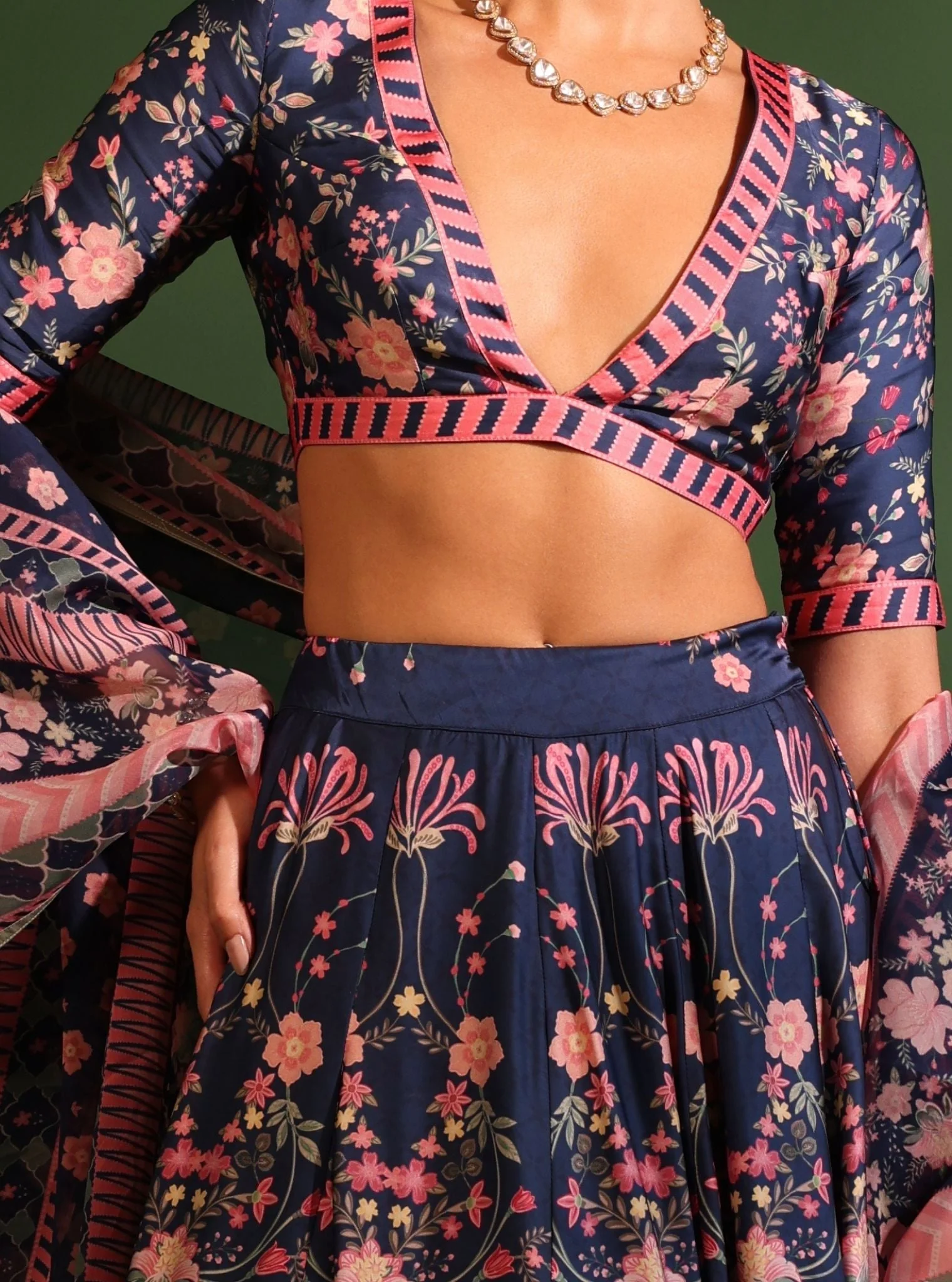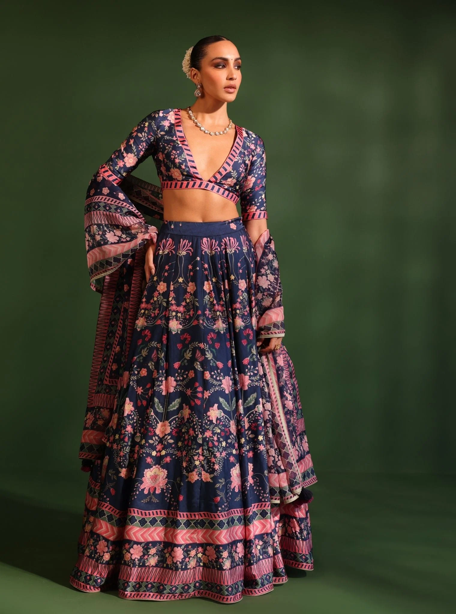 Home Lehenga Cupro Satin Printed Jhanak Navy Lehenga