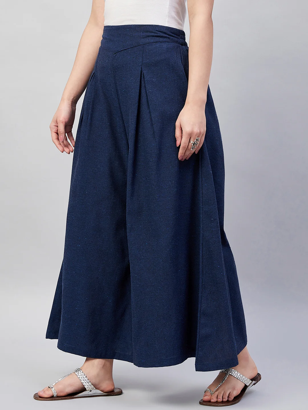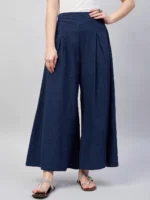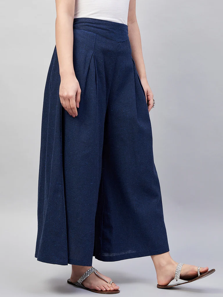 Navy Blue Smart Casual Handloom Palazzo