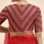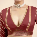 Navya x Tyohaar | Auburn Red Elbow Sleeves Saree Blouse