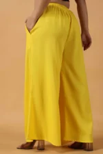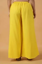 Elegantly crafted with intricate schiffli embroidery, this lightweight palazzo offers a perfect blend of comfort and style. The silhouette is designed for effortless movement, along with two side pockets making it a versatile addition to both casual and formal wardrobes. Ideal for adding a touch of traditional charm with modern flair.
