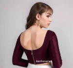 Upgrade your ethnic wardrobe with our readymade saree blouse, also available as a custom-made piece, featuring a sophisticated high neck design in luxurious raw silk fabric. This long-sleeve blouse embodies the latest trends in Indian ethnic wear and can be tailored as a stylish custom crop top.