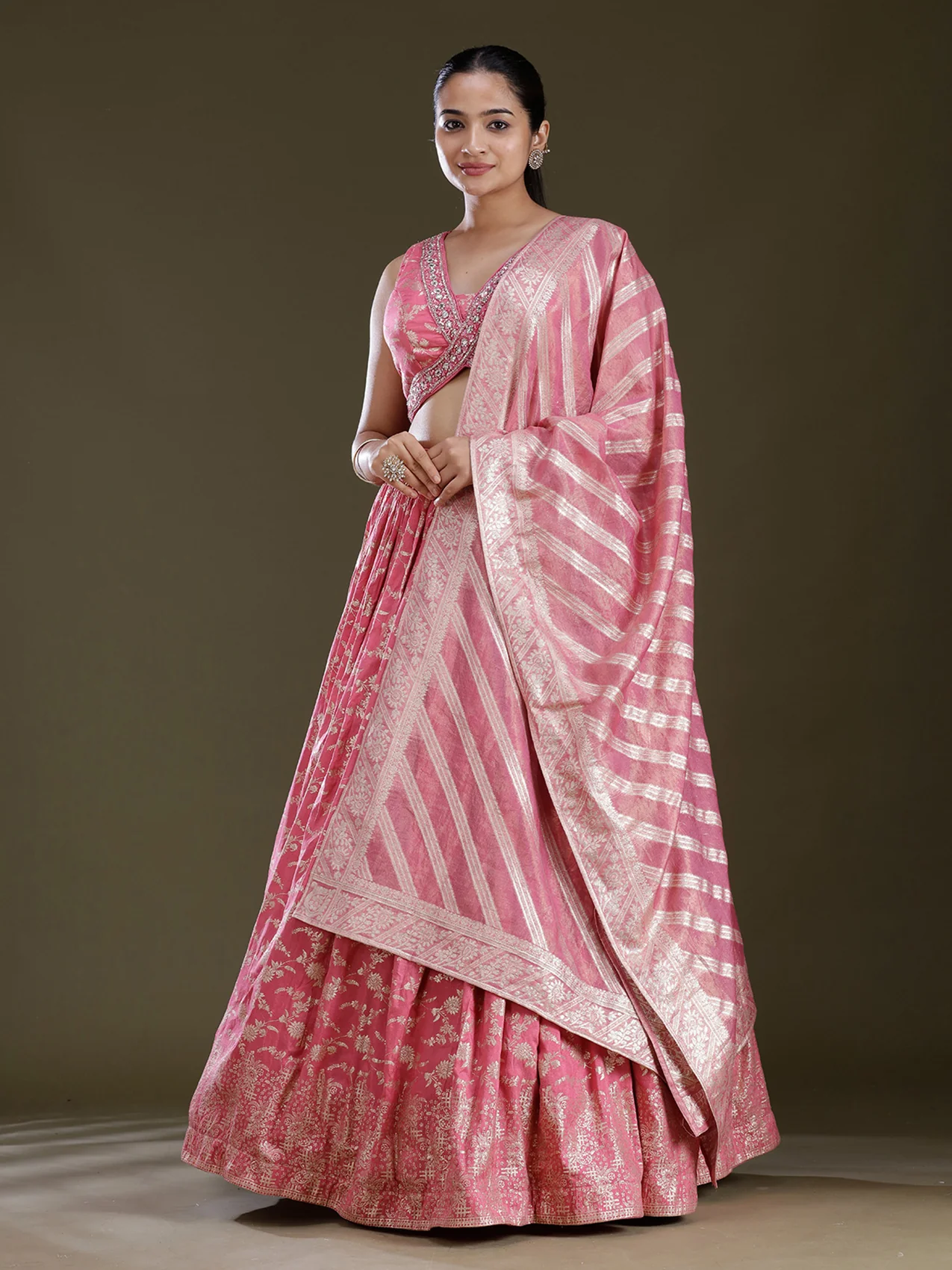 Onion Pink Sequins Soft Raw Silk Readymade Lehenga ₹8,000.00