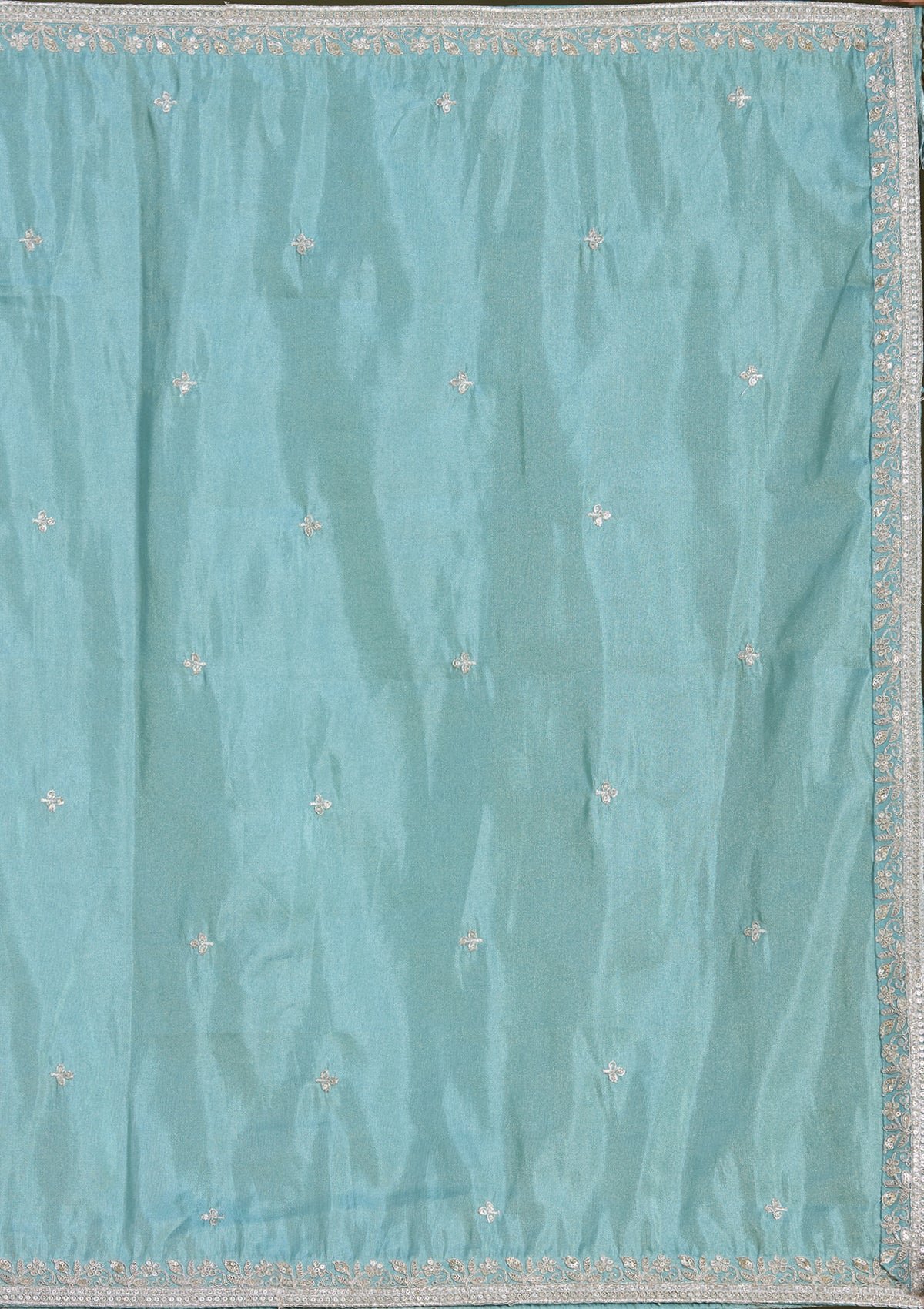 Sky Blue Readymade Lehenga in Banarasi fabric. The Lehenga is embellished with sequin embroidery. Accompanied by a Readymade blouse and dupatta. Comes with the Koskii promise of premium quality.