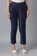 Home Palazzos & Pants Palazzos Solid Straight Fit Woven Trousers With Elasticated Waistband