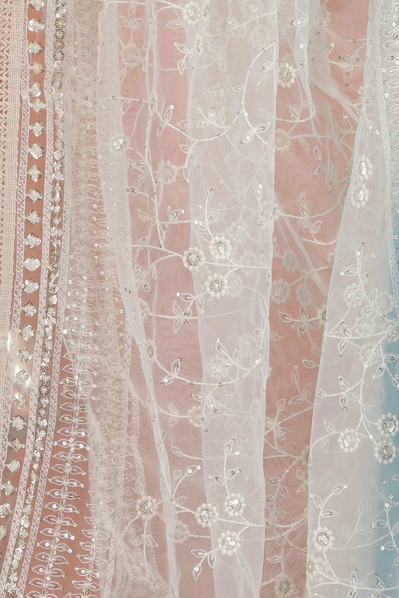Home Dupatta White Net Embroidered Dupatta