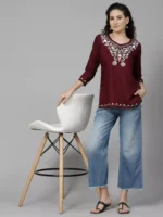 Wine Colored Resham Work Short Kurti